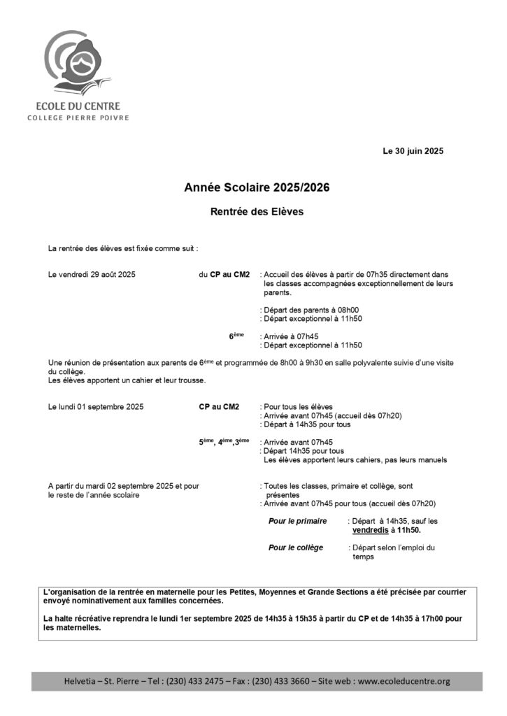 Note de rentrée 2025-2026