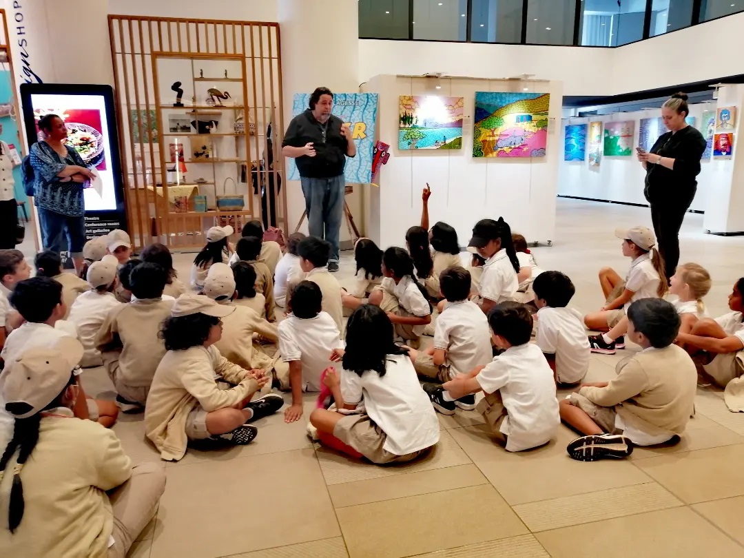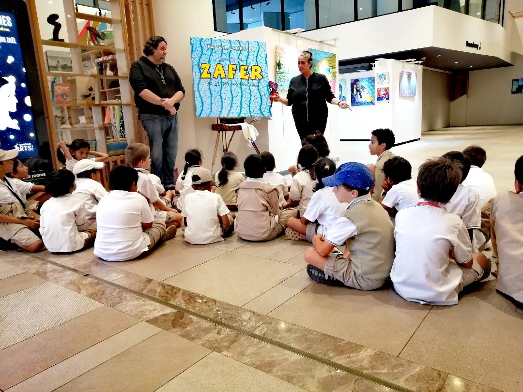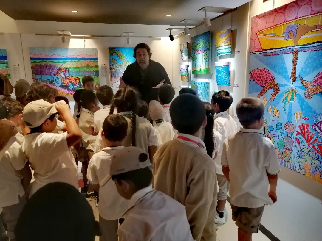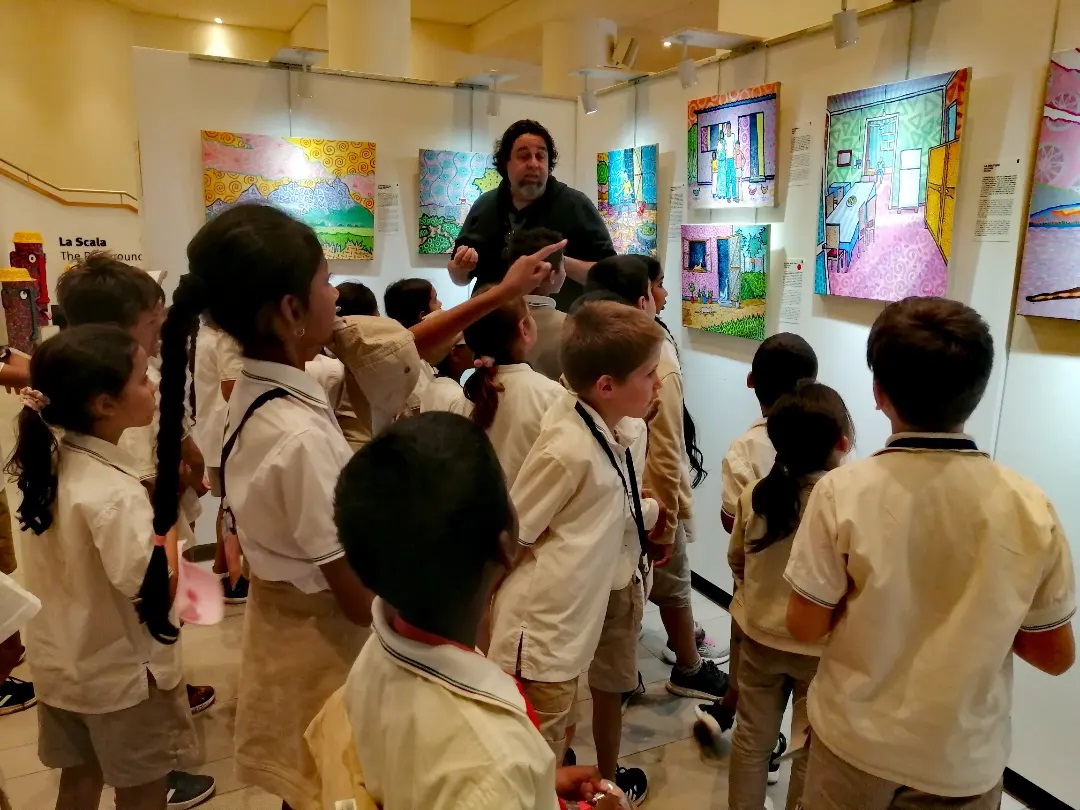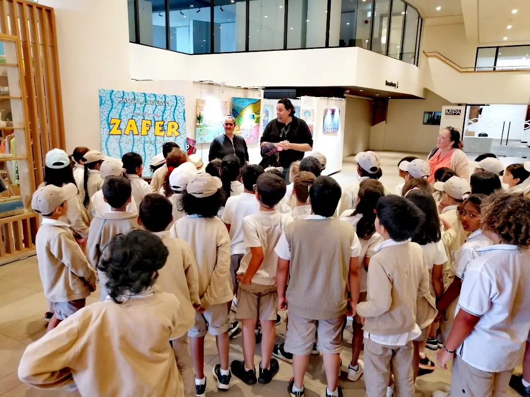 Les quatre CE2 découvrent l’exposition Zafer avec émerveillement. L’artiste Pascal Lagesse Mauritian Artist et son épouse Carole les guident devant les différents tableaux et ces drôles de bonshommes surnommés Boza (Bonom ou Bonfam Zafer). Les élèves débordent de questions sur le parcours de l’artiste, les graphismes, les couleurs, les sujets, les lieux, et s’expriment sur ce qui leur plait ou non. Nous remercions vivement l’artiste et son épouse pour leur accompagnement. Les élèves vont ensuite dessiner les paysages autour du Caudan Waterfront et déjeunent au jardin Robert Edward Hart avant de rentrer à l’école !